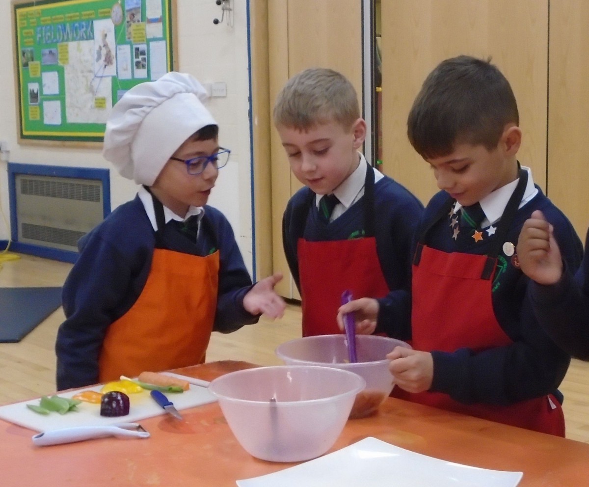 Year 3 had a fantastic time in the kitchen with Darren from Roots to Food, learning how to whip up a tasty Szechuan chicken. The session wasn’t just about flavour—it was about skills too! Darren showed us how to handle knives safely and slice like a pro, while also reminding us how easy it is to make healthy choices by cooking from scratch. With plenty of fresh veggies, lean protein, and a kick of spice, everyone left with new skills, full stomachs, and big smiles.
